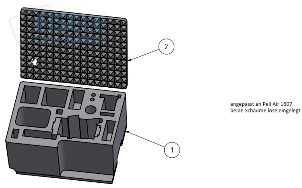 SONY BURANO mit ARRI cage in PELI AIR 1607 IM: 535x402x295 mm, im Deckel Noppenschaum, im Boden Hartschaumeinsatz für BURANO und Zubehör(Viewfinder & ARRI basic Kit)