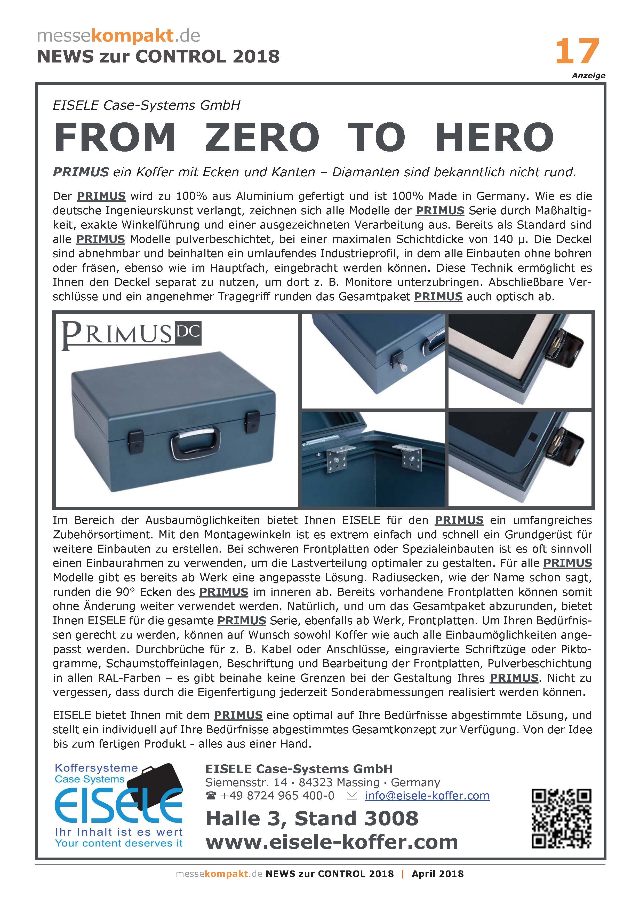 EISELE bietet Ihnen mit dem PRIMUS eine optimal auf Ihre Bedürfnisse abgestimmte Lösung, und stellt ein individuell auf Ihre Bedürfnisse abgestimmtes Gesamtkonzept zur Verfügung. Von der Idee bis zum fertigen Produkt - alles aus einer Hand.