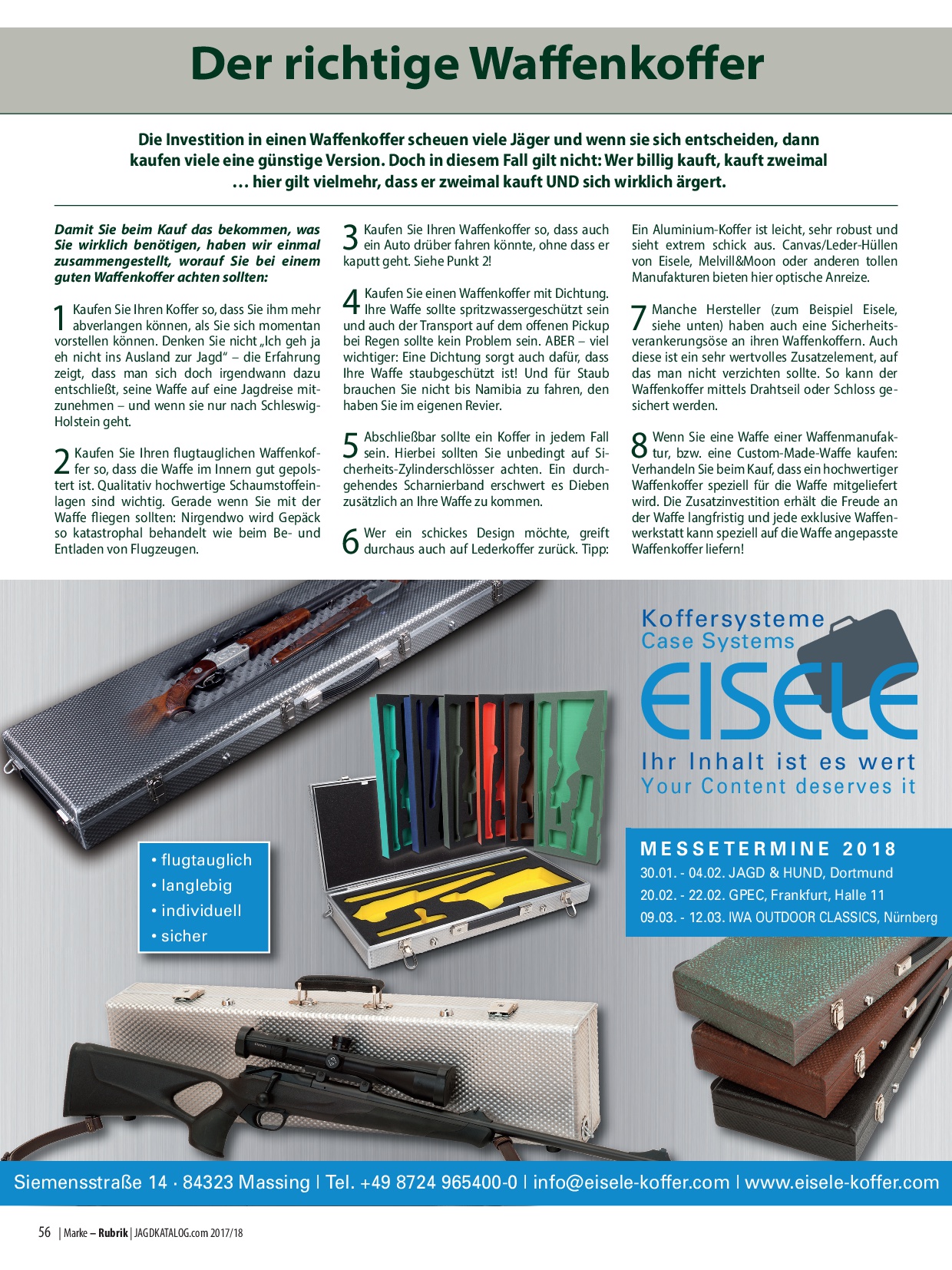 1 Kaufen Sie Ihren Koffer so, dass Sie ihm mehr abverlangen können, als Sie sich momentan vorstellen können. Denken Sie nicht „Ich geh ja eh nicht ins Ausland zur Jagd“ – die Erfahrung zeigt, dass man sich doch irgendwann dazu entschließt, seine Waffe auf eine Jagdreise mitzunehmen – und wenn sie nur nach Schleswig-Holstein geht.